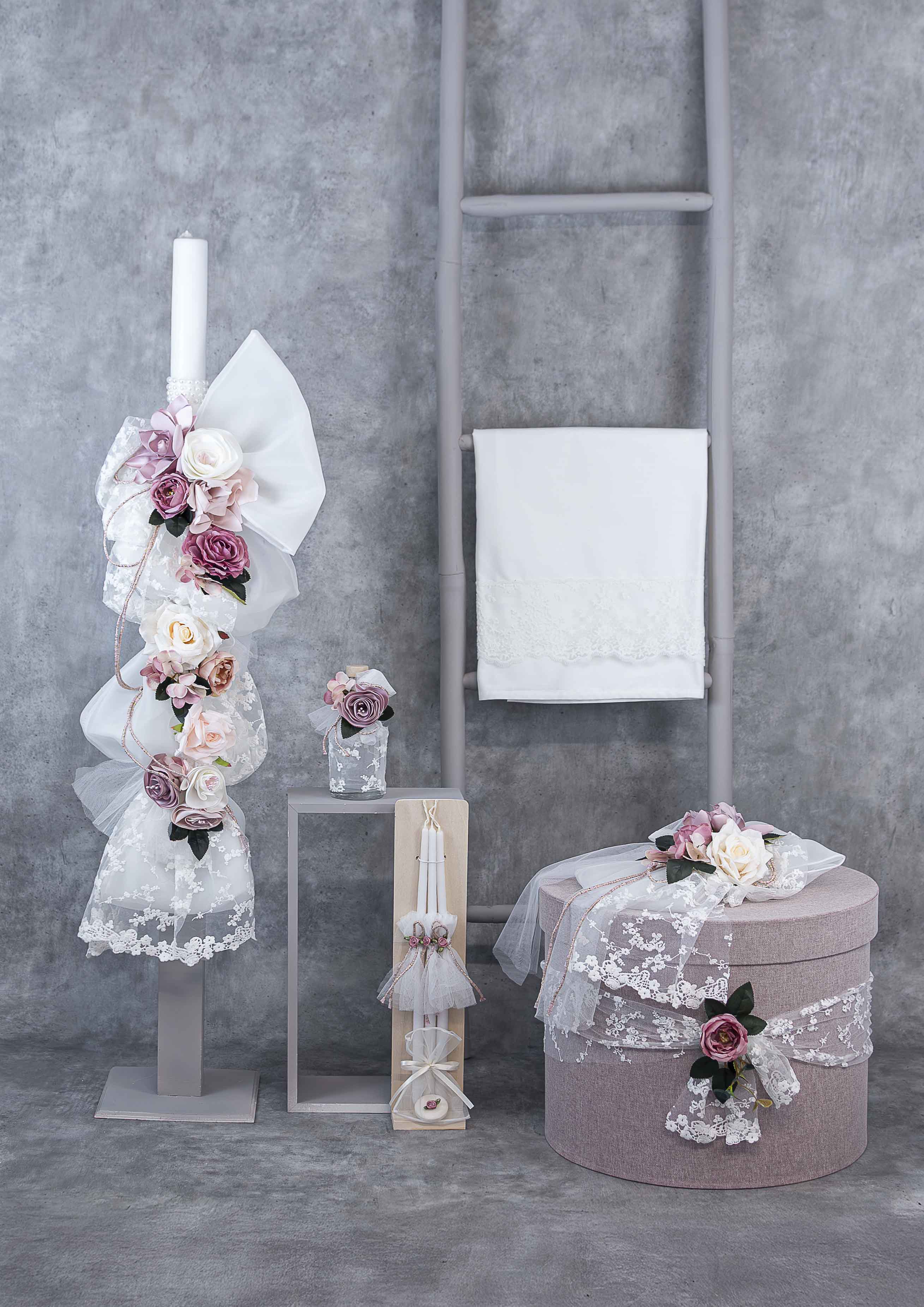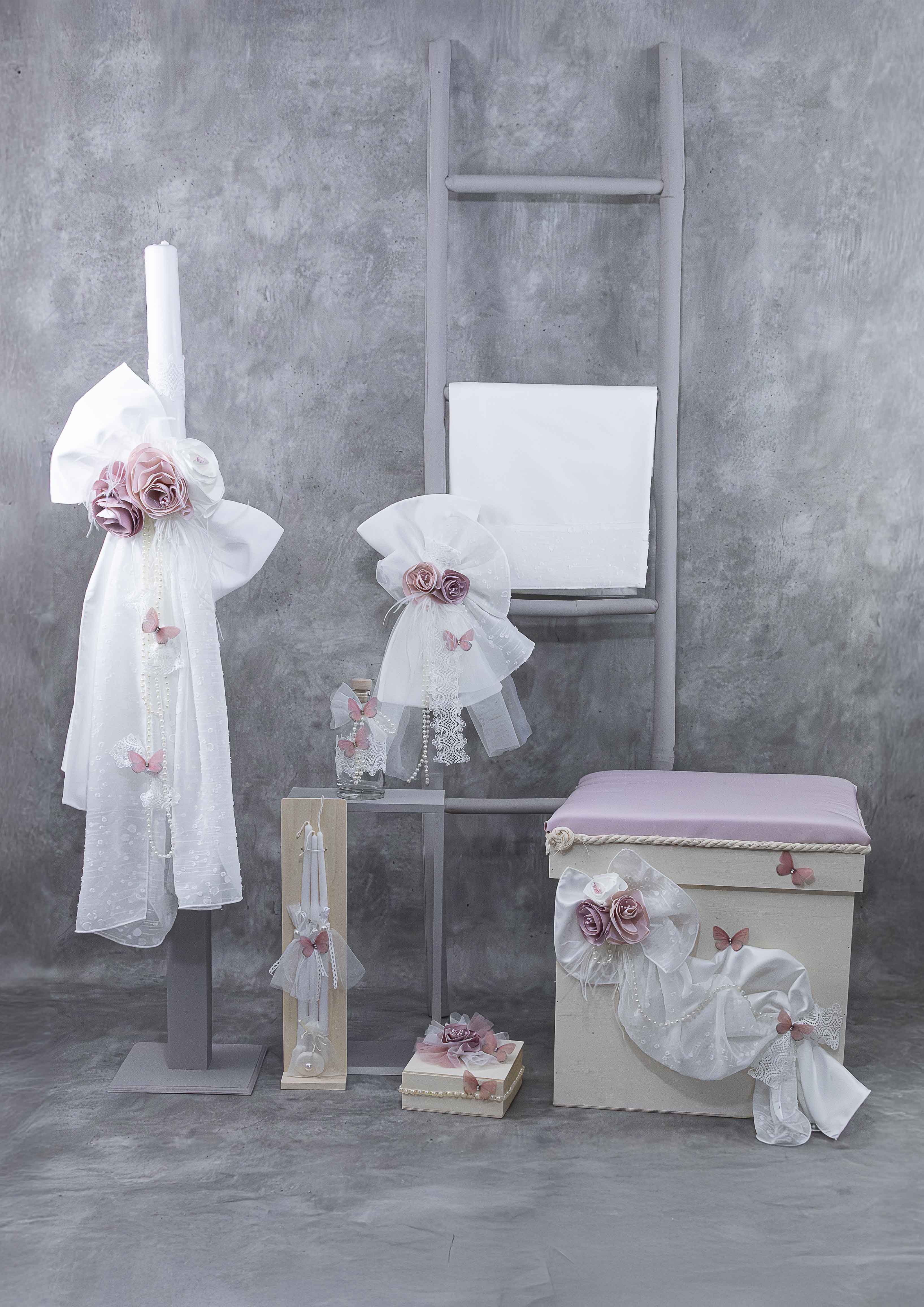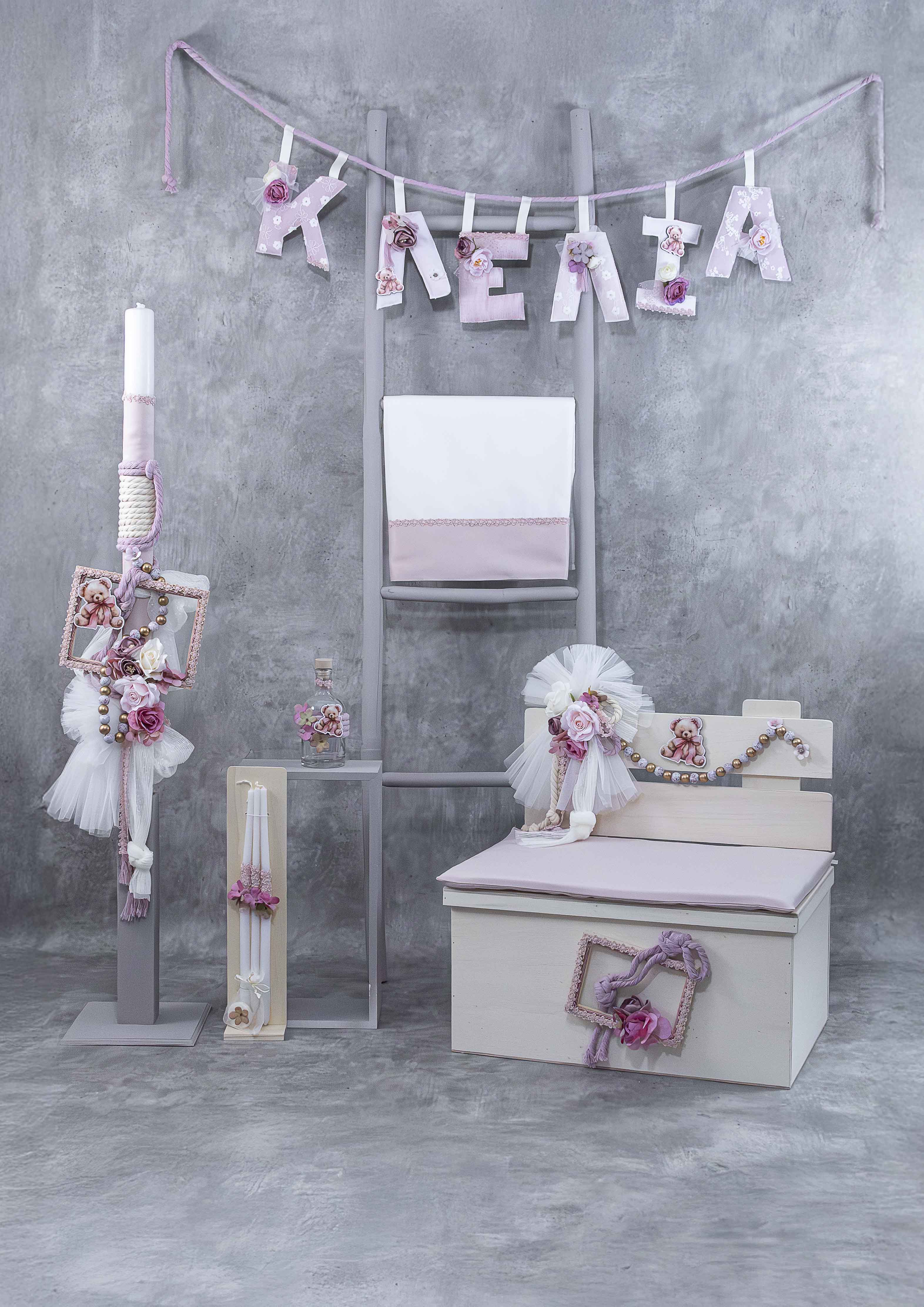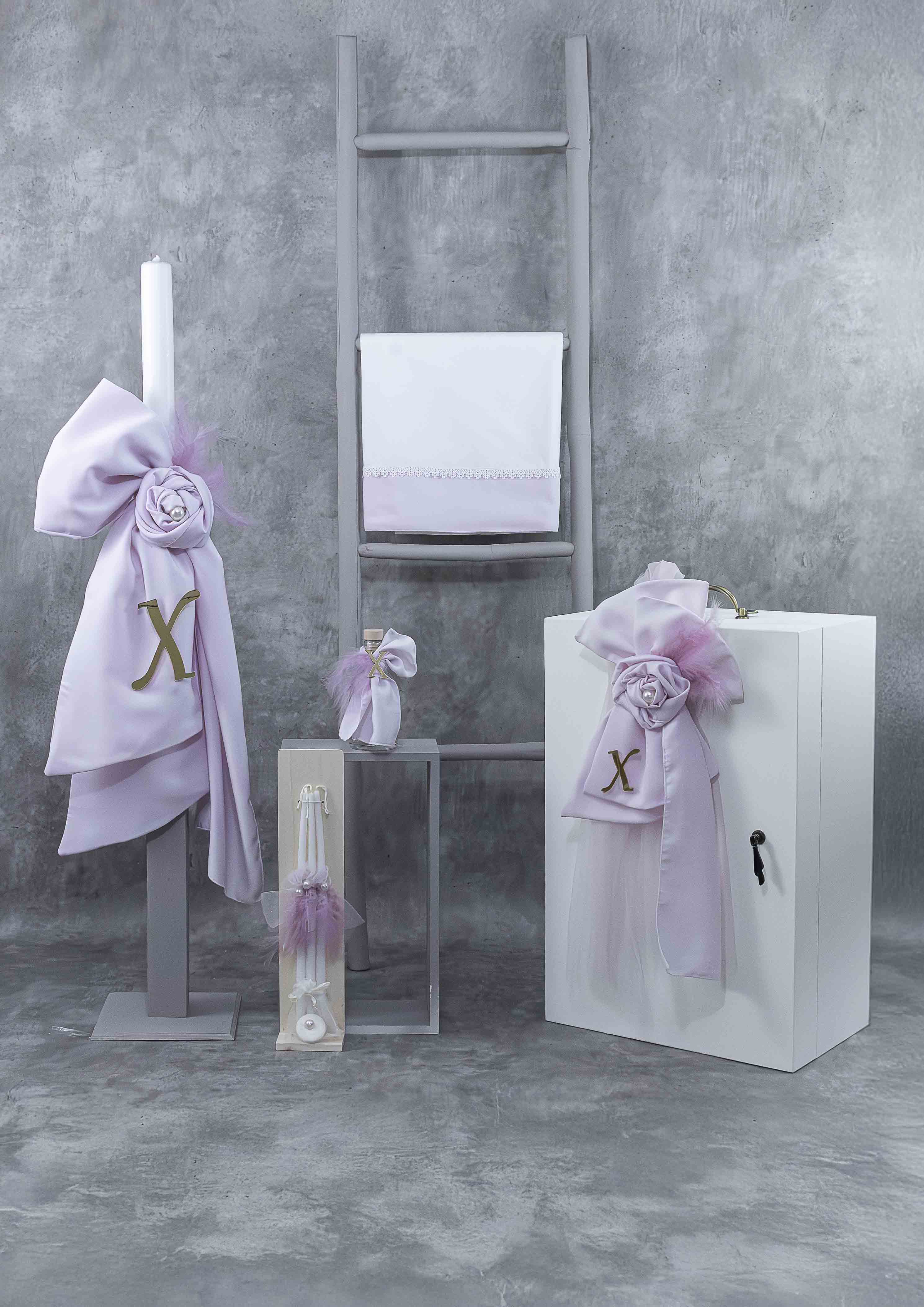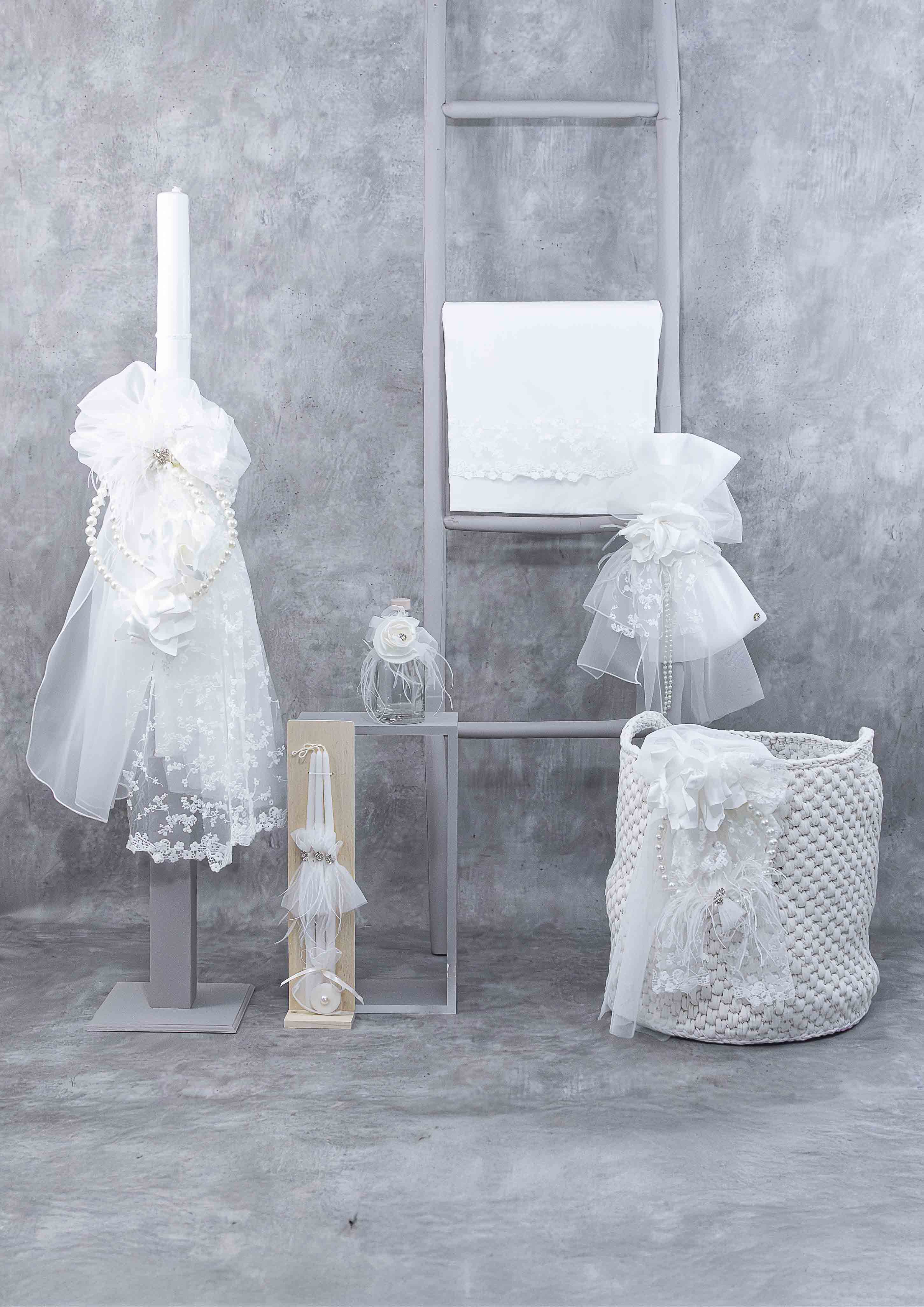 Στο εσωτερικό θα βρείτε τα απαραίτητα λαδόπανα, καθώς και το ολοκληρωμένο λαδοσέτ για το μυστήριο της βάπτισης. Το σετ συμπληρώνεται με τη λαμπάδα βάπτισης, σχεδιασμένη ώστε να ταιριάζει απόλυτα με το ύφος και τη θεματολογία της βάπτισης.